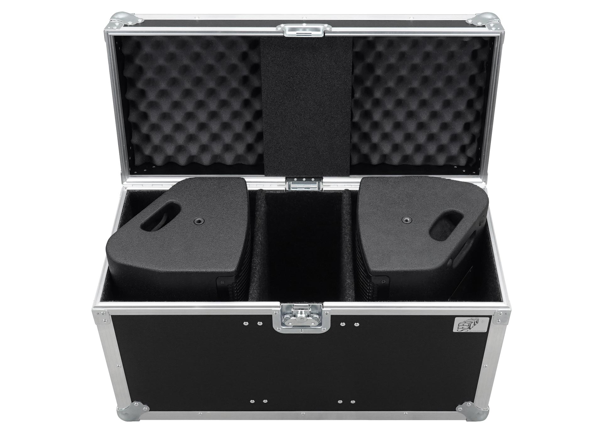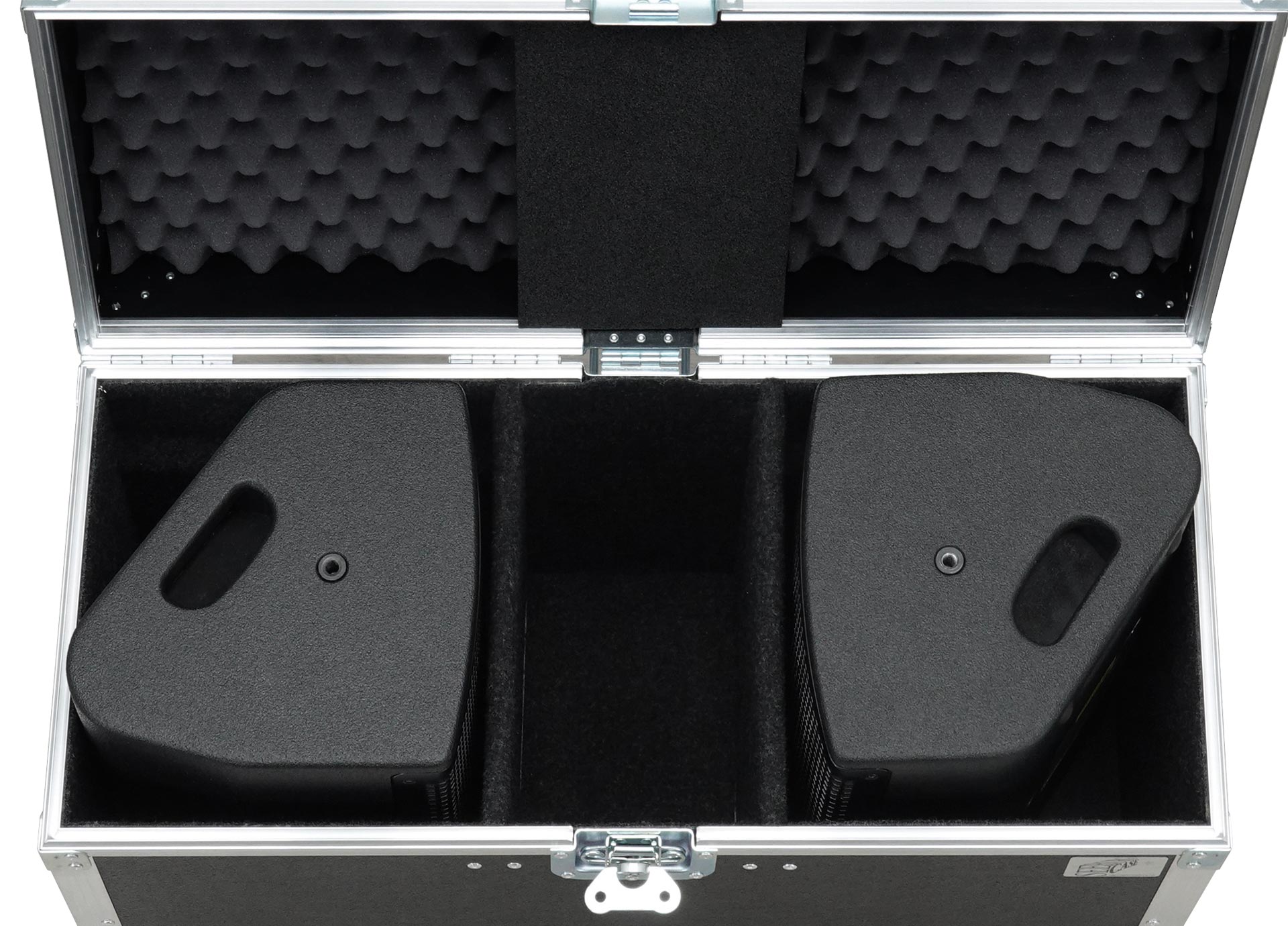 for 2 pcs. X 2, with accessory compartment (16 cm wide), interior lined with felt, heavy duty, 9 mm birch multiplex, PVC coated black, 2 x recessed sprung handles, 1 x butterfly latch medium